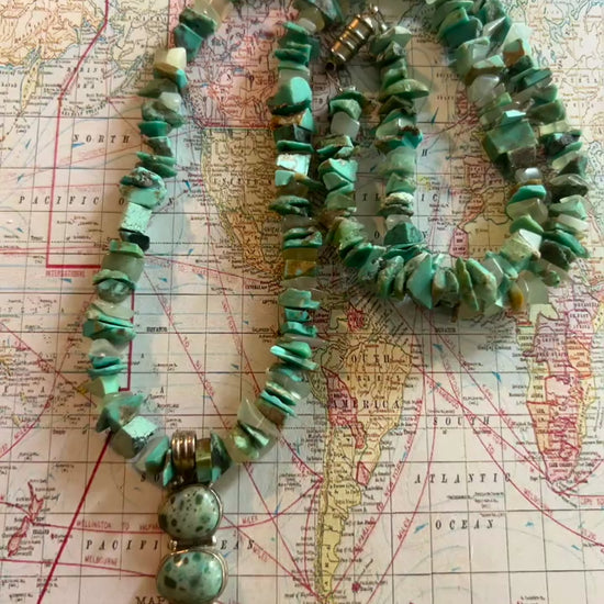 Opalite Pendant and Unpolished Turquoise Chip Necklace